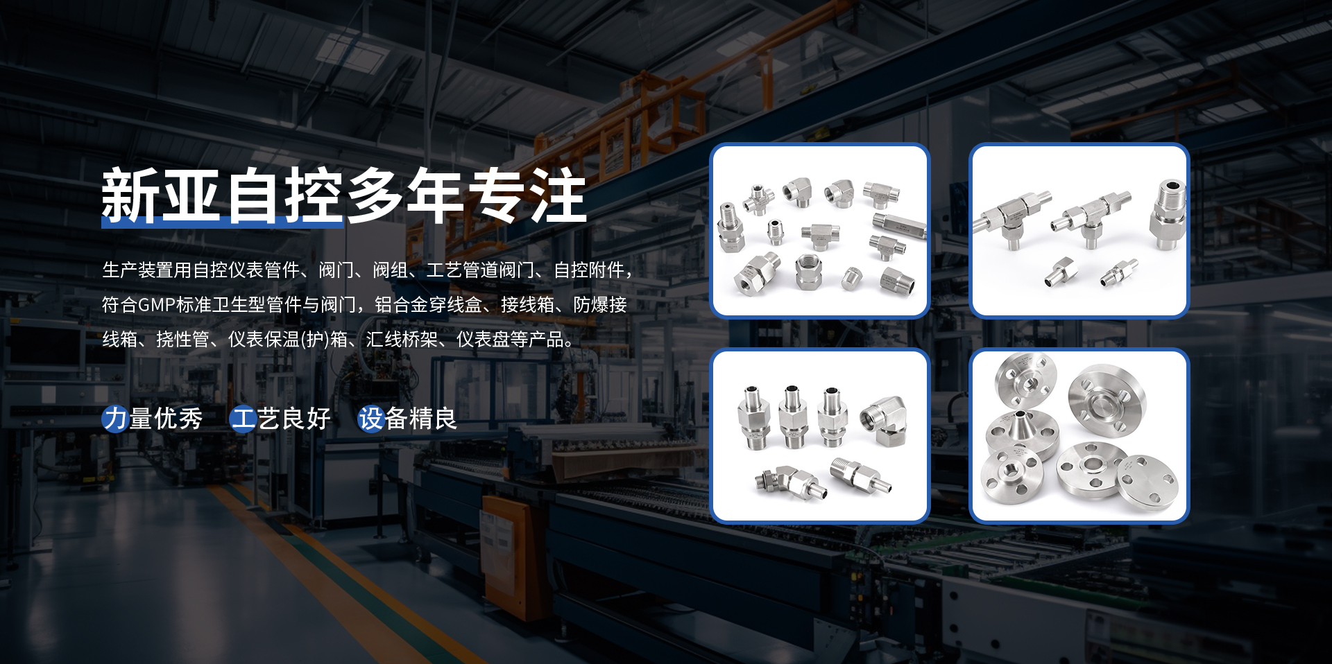 揚中新亞自控工程有限公司,成立于1995年,地處繁榮富庶的長江金三角,座落在聞名遐邇的水上花園城市、生態(tài)示范區(qū)一揚中市。東傍上海和蘇、錫、常,西臨南京,南屬鎮(zhèn)江,北望揚州,環(huán)境優(yōu)美,交通便捷,區(qū)域位置良好。公司以市場為導(dǎo)向,引進(jìn)現(xiàn)代化技術(shù),發(fā)展壯大本土企業(yè),生產(chǎn)與歐、美、國產(chǎn)等裝置用自控儀表管件、閥門、閥組、工藝管道閥門、自控附件,符合GMP標(biāo)準(zhǔn)衛(wèi)生型管件與閥門,內(nèi)燃機(jī)配件、儀器儀表、橋架、五金、橡膠制品等產(chǎn)品。
